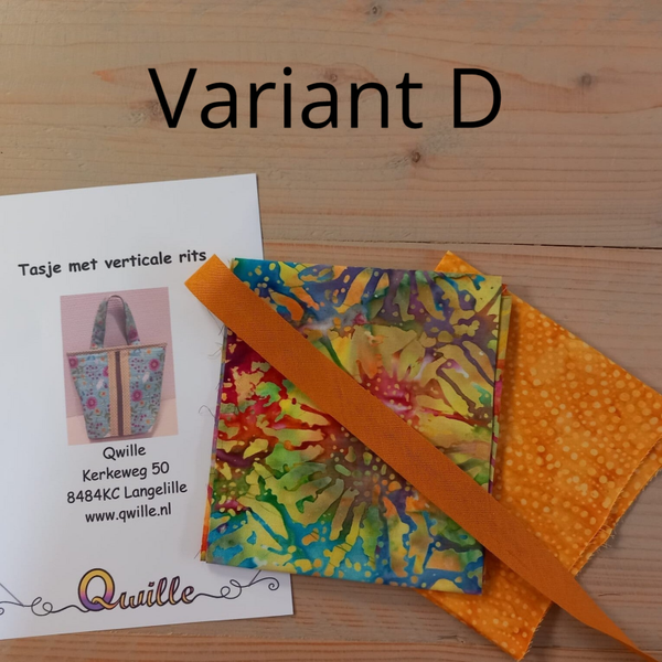 Uitleg kant-en-klaar pakket: in de foto's zie je de verschillende kleur/stoffen-combinaties die beschikbaar zijn voor dit pakket. Bij Variant kun je kiezen voor de overeenkomstige letter zodat je het juiste pakket ontvangt.
