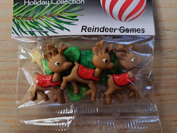 Reindeer games: 3 rendieren en 2 kerstbomen.