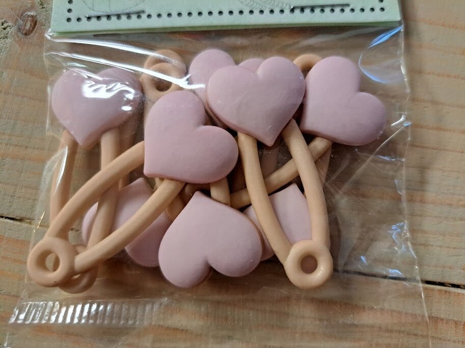 Large Pink Diaper Pins: knopen van luierspelden met een roze hart.