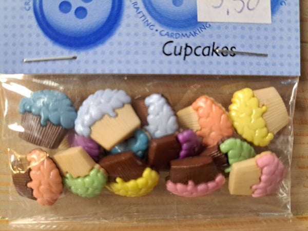 Cupcakes: 14 knopen in de vorm van een cupcake in diverse kleuren.
