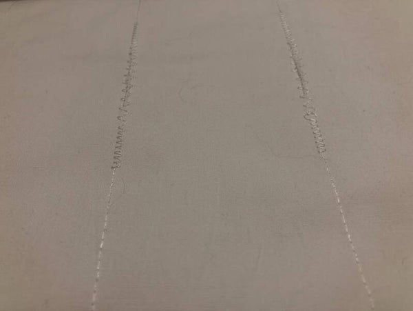 Naaistof Creme met lijn - een cremekleurige katoenen stof met een gestikte lijn er op.
