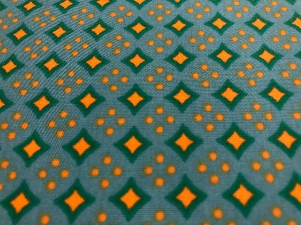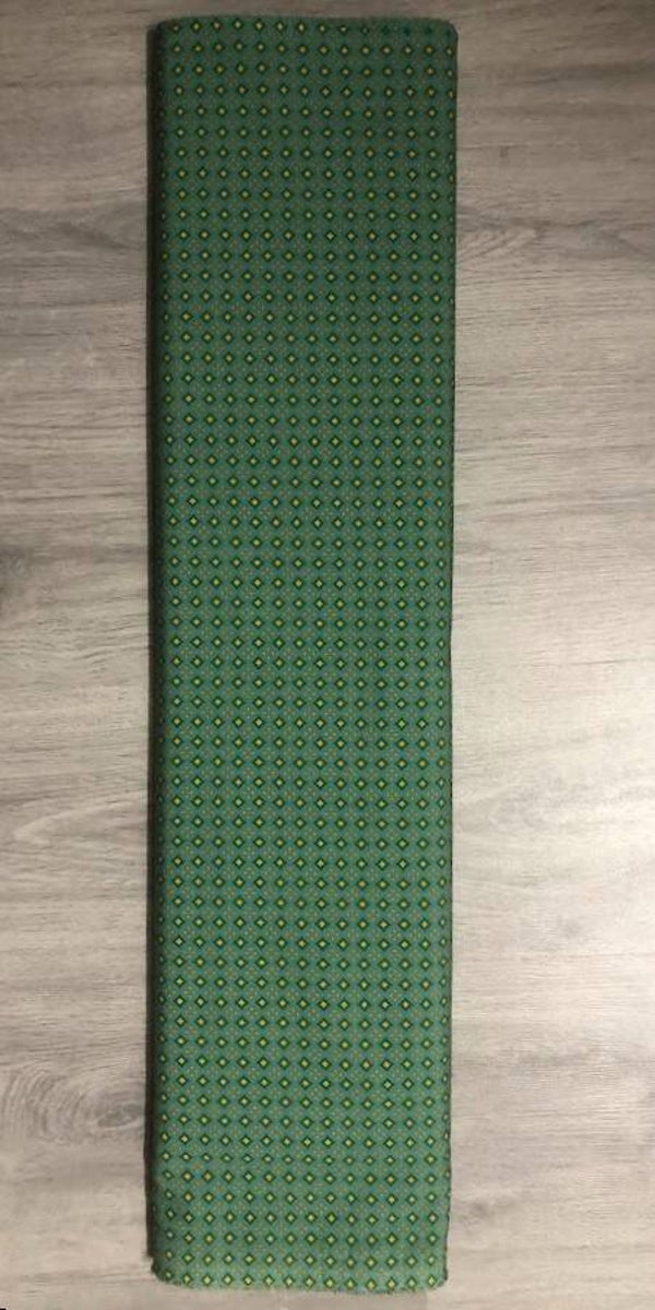 Naaistof Groen gele ruit - een groene katoenen stof met groene en gele ruiten en gele stipjes.