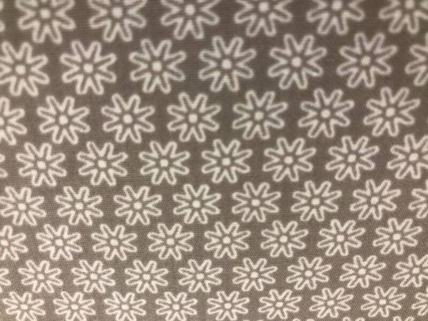 Naaistof Retro Cream - een naaistof in taupe kleur met kleine witte bloemetjes.