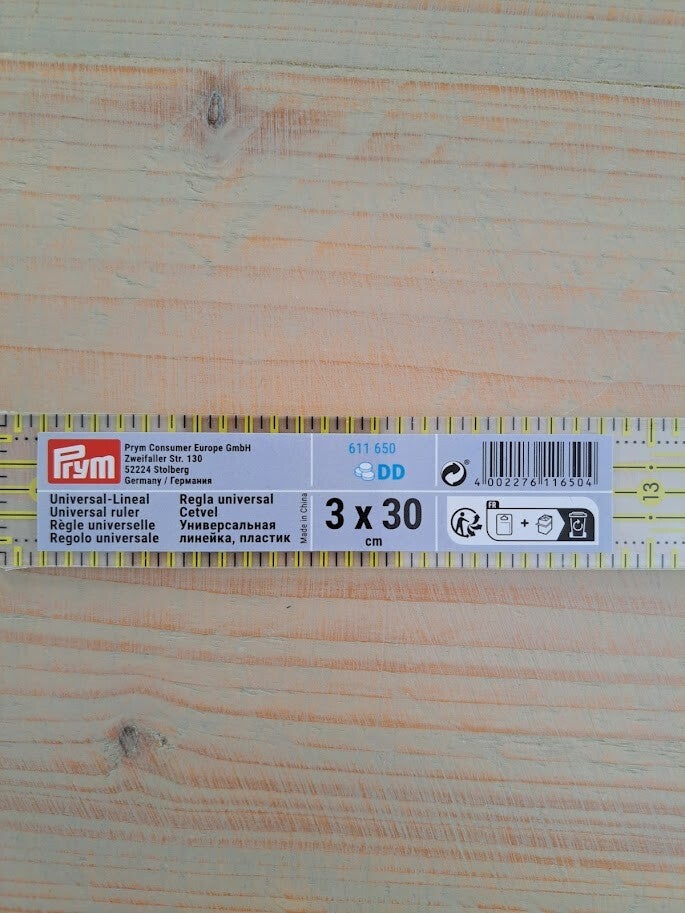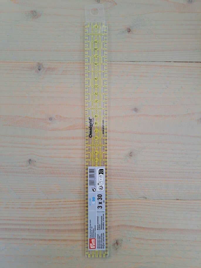 Handige smalle liniaal voor het snijden van kleinere stofdelen. Zeker als je graag met een 28 mm of een 18 mm rolmes werkt.
