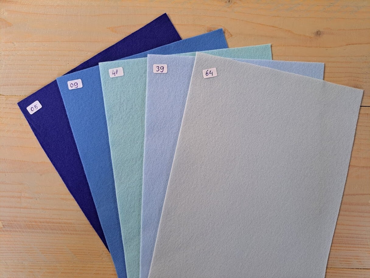 Vilten lapje in de kleur lichtblauw van ca. 20 x 30 cm.