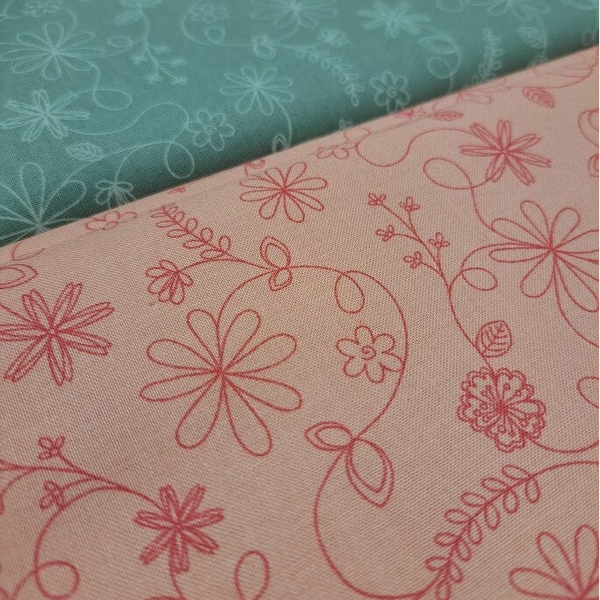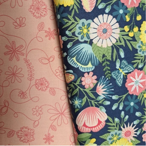 Een fleurige serie quiltstoffen van Maywood Studio in de voornaamste kleuren roze en blauw. De serie bevat twee bloemenstoffen, één met een blauwe achtergrond en één met een witte achtergrond. En daarnaast nog twee meer effen stoffen met een verfijnde getekende lijnopdruk van bloemen. Mooi voor een vrolijke, kleurrijke (bloemen)quilt!