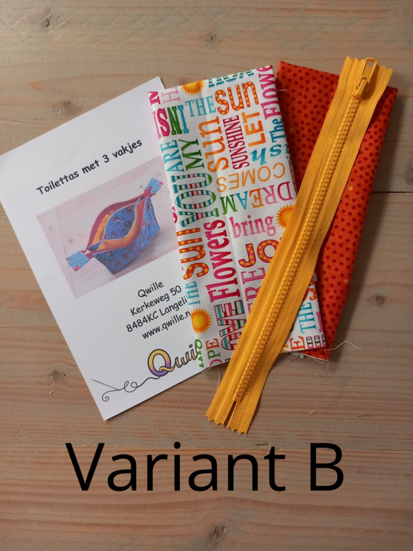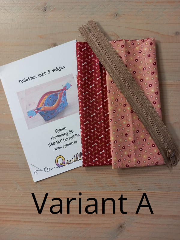 Uitleg kant-en-klaar pakket: in de foto's zie je de verschillende kleur/stoffen-combinaties die beschikbaar zijn voor dit pakket. Bij Variant kun je kiezen voor de overeenkomstige letter zodat je het juiste pakket ontvangt.