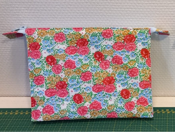 Een handig (tasje) om kleine spulletjes in mee te nemen. Het tasje heeft 3 vakken, zodat je de spullen gemakkelijk kunt scheiden. De formaat van het tasje is 22 x 17 cm.
