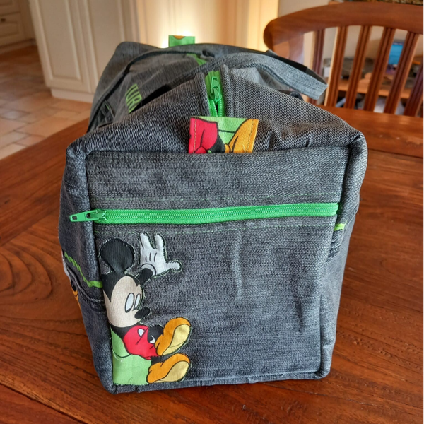 Een naaipatroon voor een handige (logeer)tas, die je kunt maken van een (oude) spijkerbroek. Naast een spijkerbroek heb je ook voeringstof, volumevlies, ritsen en eventueel wat leuke applicaties labels nodig.