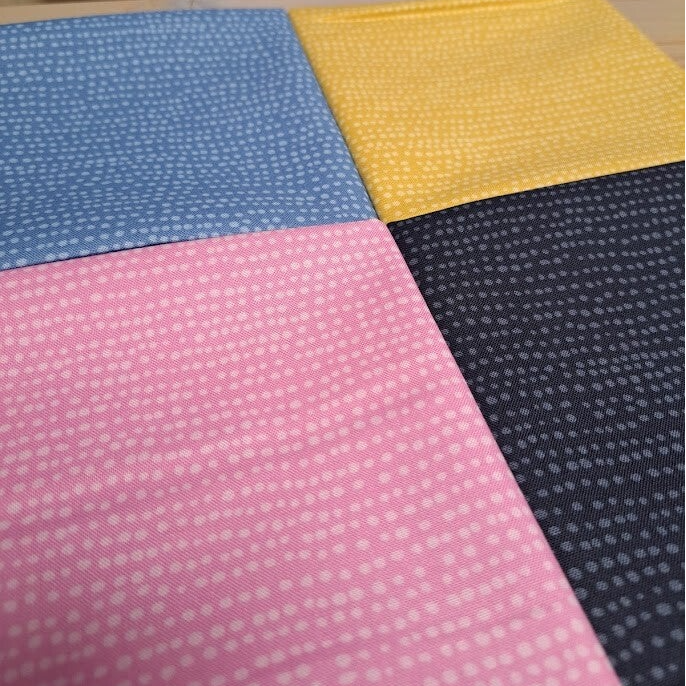 De Moonscape-collectie van Dear Stella is een populaire basis-stoffencollectie. Deze quiltstof kenmerkt zich door een verfijnd patroon van onregelmatige stipjes, geïnspireerd op maanlandschappen en subtiele texturen. Het dessin is rustig, maar heeft toch voldoende diepte om je quilt of naaiproject extra karakter te geven.