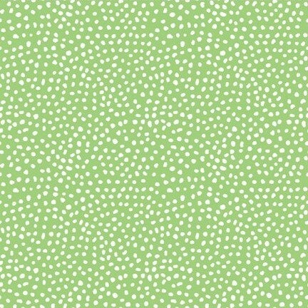 Deze groene stof met witte stippen past perfect in een mooie lentequilt, zoals deze lenteloper. Dit geldt ook voor de andere stoffen van de Doodle Blossoms serie, en uiteraard zijn alle stoffen mooi met elkaar te matchen.
