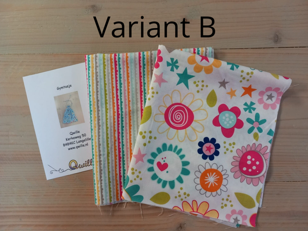 Uitleg kant-en-klaar pakket: in de foto's zie je de verschillende kleur/stoffen-combinaties die beschikbaar zijn voor dit pakket. Bij Variant kun je kiezen voor de overeenkomstige letter zodat je het juiste pakket ontvangt.
