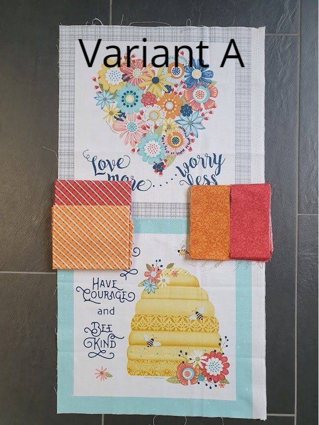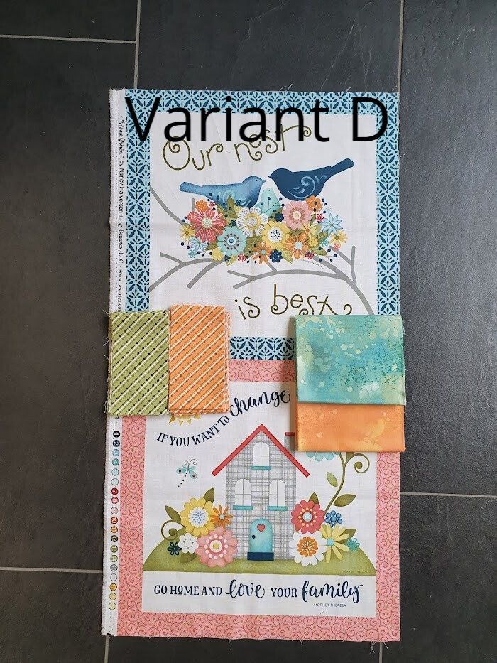Uitleg kant-en-klaar pakket: in de foto's zie je de verschillende kleur/stoffen-combinaties die beschikbaar zijn voor dit pakket. Bij Variant kun je kiezen voor de overeenkomstige letter zodat je het juiste pakket ontvangt.