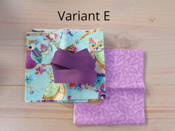 Uitleg kant-en-klaar pakket: in de foto's zie je de verschillende kleur/stoffen-combinaties die beschikbaar zijn voor dit pakket. Bij Variant kun je kiezen voor de overeenkomstige letter zodat je het juiste pakket ontvangt.
