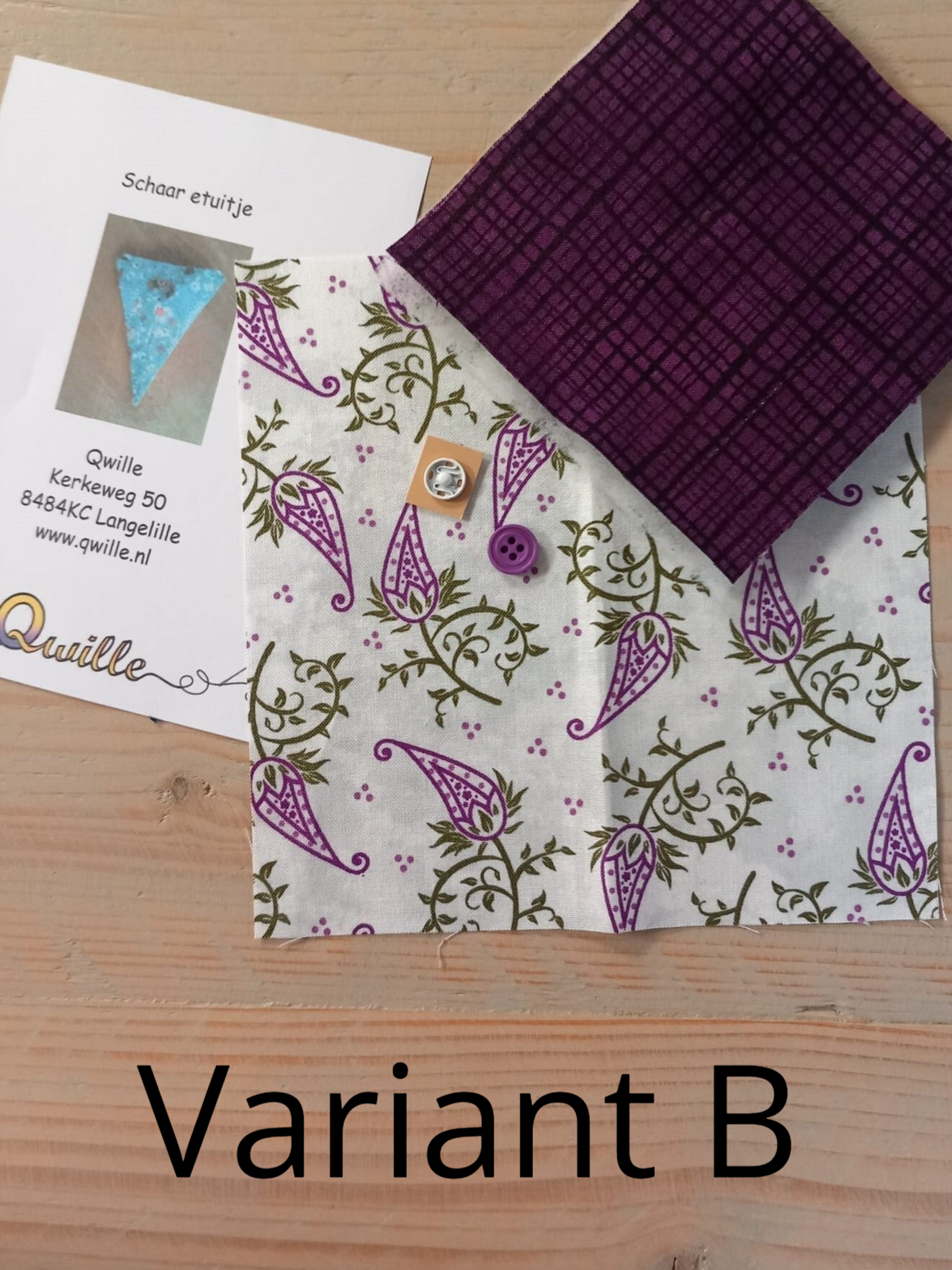 Uitleg kant-en-klaar pakket: op de foto's zie je de verschillende kleur/stoffen-combinaties die beschikbaar zijn voor dit pakket. Bij Variant kun je kiezen voor de overeenkomstige letter zodat je het juiste pakket ontvangt.