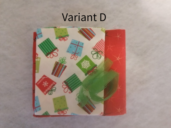 Mandje met lintje, in verschillende leuke kerststofjes.