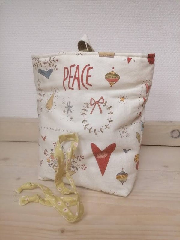 Uniek cadeautasje met strikje, in leuke verschillende kerststofjes.