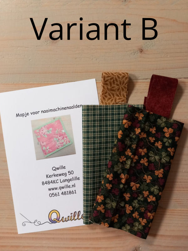 Uitleg kant-en-klaar pakket: in de foto's zie je de verschillende kleur/stoffen-combinaties die beschikbaar zijn voor dit pakket. Bij Variant kun je kiezen voor de overeenkomstige letter zodat je het juiste pakket ontvangt.