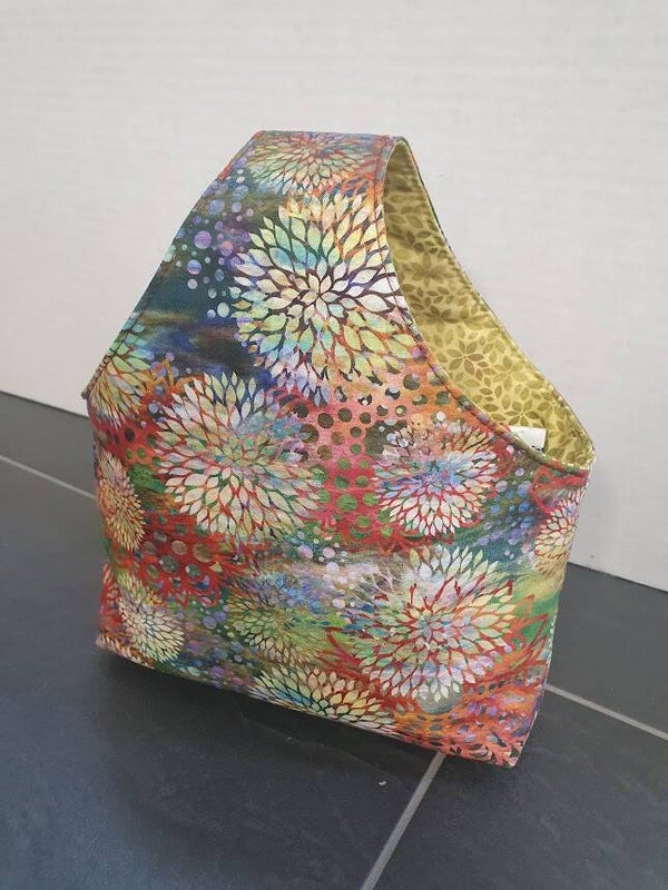 Een leuk mandje dat je maakt van 2 fat eights, dus 2 lapjes van 25 x 55 cm. Deze is bijvoorbeeld erg leuk om je bolletje katoen in te doen en aan je pols te hangen, als je aan het haken bent. maar ook voor allerlei andere doeleinden geschikt.