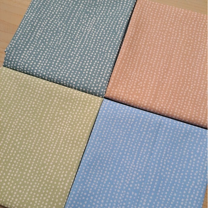 Deze 100 % katoen quiltstoffen hebben een fijne stippenprint die soepel past bij moderne en klassieke quiltpatronen.